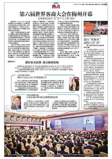 全球客商支持广东“百千万工程”启动 新快报讯 11月3日上午,以“弘扬客商精神、助力民族复兴”为主题的第六届世界客商大会在梅州开幕。东帝汶副总理黎发芳,广东省省长王伟中,全国人大常委会委员
