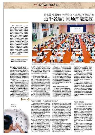 第七届“翰墨青春 传承岭南”广东青少年书画大赛 东莞分赛区书法现场赛圆满落幕 落笔生花,墨香满堂。11月11日下午,由广东省教育厅指导,广东新快报社、广东省美术家协会、广东省书法家协会联