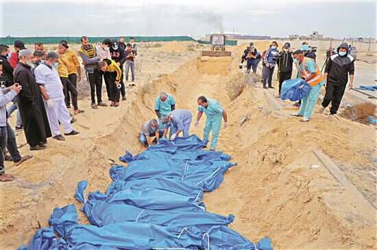 ■11月22日,人们在加沙地带南部城市汗尤尼斯埋葬巴以冲突遇难者。 新华社发 |