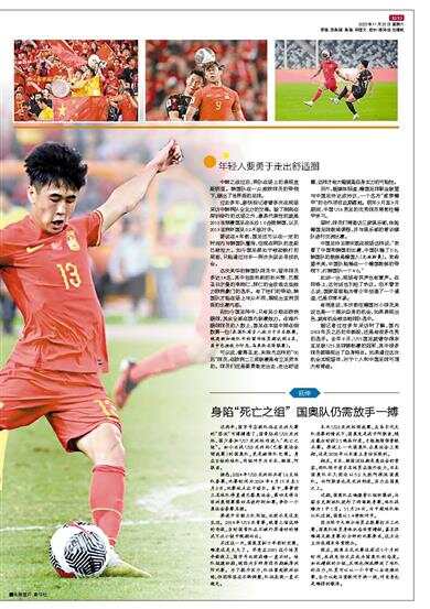年轻人要勇于走出舒适圈 中韩之战过后,两队在场上的表现差距明显。韩国队在一众旅欧球员的带领下,踢出了世界级的足球。 过去多年,新快报记者曾多次在现场采访中韩两队全主力的交锋。除了刚刚在深圳举行的这场之外,最具代表性的就是2018世预赛国足在长沙1:0击败韩国,以及2019亚洲杯国足0:2不敌对手。 要说在4年前,国足还可以在一定的时间内与韩国队僵持,但现在两队的差距已被拉大。如今国足都处于被动挨打的局面,只能通过对手一两次失误去寻找机会。 这次来华的韩国队球员中,留洋球员多达14名,其中包括热刺的孙兴慜、巴黎圣日尔曼的李刚仁、拜仁的金玟哉这些效力欧洲豪门的选手。有了他们的带动,韩国队才能在场上与众不同,展现出亚洲顶级的比赛内容。 而如今国足阵中,只有吴少聪在欧洲踢球,其余全部在国内联赛效力。在海外踢球球员的人数上,国足在本组中排在倒数第一位(泰国队有多人效力于日本联赛,就连新加坡队中的留洋球员都达到8名,其中包括效力印尼、马来西亚等联赛)。 可以说,像蒋圣龙、朱辰杰这样的“00后”球员,在欧洲二三级联赛是有立足资本的。球员们还是要勇敢走出去,走出舒适圈,这样才有大幅提高自身实力的可能性。 另外,据媒体报道,德国足球职业联盟与中国足协达成协议,一个名为“逐梦德甲”的合作项目近期落地。明年2月至3月期间,中国U16男足的优秀球员将前往德甲学习。 届时,球员们将造访三家俱乐部,体验德国足球教培课程,并与俱乐部的青训梯队进行交流比赛。 中国足协主席宋凯在现场这样说:“我看了中国和韩国的比赛,中国队输了0:3。韩国队的教练是德国人(克林斯曼)。我希望未来,中国队能够在一个德国教练的带领下,打韩国队一个4:0。” 此话一出,现场有笑声也有掌声。在网络上,这句话也引起了热议。但不管怎么说,国家层面能为青少年创造了一个通道,已是非常不易。 有消息说,本次前往德国对小球员来说也是一个展示自身的机会,如果表现出色,就有机会被当地球队选中。 据记者过往多年采访时了解,国内2008年及之后的年龄段,还是有很多优秀的选手。去年9月,U15国足就曾夺得东亚足联U15足球锦标赛的冠军,其中很多球员都展现出了自身特点。如果通过这次机会实现留洋,对于个人和中国足球可谓大有裨益。 延伸 身陷“死亡之组” 国奥队仍需放手一搏 近两年,国字号各级队伍在亚洲大赛的“签运”可谓糟透了,国青征战U20亚洲杯、国少参加U17亚洲杯均进入“死亡之组”。如今出战U23亚洲杯(巴黎奥运会预选赛)的国奥队,更是被强队包围。身在B组的球队,同组对手为日本、韩国、阿联酋。 据悉,2024年U23亚洲杯共有16支球队参赛,比赛时间为2024年4月15日至5月3日,比赛地点在卡塔尔。其中,赛事前三名球队将直通巴黎奥运会,第四名将与非洲奥预赛第四名进行附加赛,争夺一个奥运会参赛名额。 要说中日韩三队同组,此前不是没发生过。2014年U19亚青赛,就曾上演这样的奇观,当时国青队在不被外界看好的情况下从小组中脱颖而出。 不过这一次,国奥复制十年前的突围,难度还是太大了。毕竟在2001这个球员年龄段上,国字号此前战绩一直不好。球队组建初期,就因为多种原因长期缺席洲际比赛。为了提升实力,队伍曾赴欧洲拉练,但因阵容在不断调整,队伍表现一直不稳定。 本次U23亚洲杯预选赛,在马尔代夫队退赛的情况下,国奥先是战平阿联酋,随后最后时刻2:1绝杀印度,才勉勉强强晋级正赛。要说上一次国奥队在奥运会上亮相,还是2008年以东道主身份实现的。 相反,日本、韩国过往都是奥运会的常客,两队阵中有多名球员在海外效力,日本国奥队不久前还以5:2大胜阿根廷国奥队。而阿联酋也是亚洲劲旅,实力在国奥之上。 近期,国奥队在福建晋江组织集训,与塔吉克斯坦队进行了两场热身赛,球队战绩为1平1负。11月24日,与中超球队浙江队过招,国奥以1:4惨败对手。 因为阵中大部分球员在联赛打不上比赛,国奥队球员身体状态非常糟糕,甚至很难满足热身赛90分钟的比赛要求,这点让主帅成耀东非常挠头。 现在,距离正式比赛还有近5个月的时间,未战先怯不应成为国奥队的态度。如此糟糕的分组,反倒也彻底释放了球队的压力,队员可以以一个平常心去迎接比赛,全力以赴与顶级对手拼一拼,对自身也是难得的锻炼。