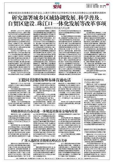 研究部署城乡区域协调发展、科学普及、自贸区建设、珠江口一体化发展等改革事项