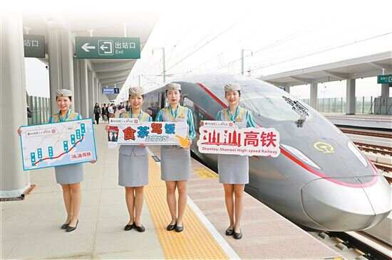 ■12月14日,汕(头)汕(尾)高铁开通试运行列车,汕汕高铁线路全长162公里,设计时速350公里,计划在本月底通车。届时接上已通车的广汕高铁,从广州的新塘站到汕头南站的时间最快只需1.5小时。 新快报记者 毕志毅/摄