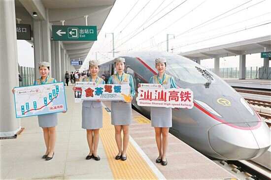 汕汕高铁开通倒计时 汕汕高铁开通倒计时!昨日11时09分,新快报记者登上G8428次体验汕汕高铁试运行列车,从汕尾站出发,仅用了40分钟,就抵达汕头南站,比现在的出行时间压缩了一半。本次试运行的是汕头南至汕尾段,线路长度143公里。汕头至汕头南段的线路包含汕头湾海底隧道,正在有序建设中。 据了解,汕汕高铁计划在本月底通车。届时接上已通车的广汕高铁,从广州的新塘站到汕头南站的时间最快只需1.5小时,比现在快了一个小时。 汕汕高铁起自汕头站,途经汕头、揭阳、汕尾3个市8个区县(汕头市龙湖区、濠江区、潮阳区和潮南区,揭阳市惠来县,汕尾市陆丰市、海丰县和城区),接入广州至汕尾高铁汕尾站,线路全长162公里,全线共设汕头、汕头南、潮南、惠来、陆丰东、陆丰南、汕尾7座车站,其中汕头站、汕尾站为既有车站,其余为新建车站。 【记者体验】 车上WiFi信号顺畅 登上G8428次复兴号列车,坐下不久,列车平稳“起步”,时速很快就达到了300公里,并且还在提升。一路上,最高时速达到350公里。 由于从汕尾站出发后只经停陆丰南站,抵达汕头南站只花了40分钟,车上旅客还没把手里的奶茶喝完,就已经到站了。 据了解,在汕汕高铁通车后,从广州的新塘站到汕头南站的时间最快只需1.5小时,比现在快了一个小时。 昨天试运行的车型为最新的智能复兴号动车组,车上每个座位都有充电口,而且车上还有免费的“高铁Wi-Fi”。记者一上车,手机就显示有网络,一路上WiFi信号稳定,即使列车达到最高速度时也不受影响,在车上办公上网都非常方便。 列车上可以点“外卖” 记者在餐车看到,针对线路特点,广铁集团动车组餐饮提供了潮式香卤鸭翅等具有沿途地区风味的餐食,还有甘草话梅、咸黄皮、牛肉脯等粤东特色的休闲食品。高铁奶茶方面,汕汕高铁也有专门的一系列“特饮”:金色澜卡红豆奶茶、金桔柠檬茶和芝士奶盖乌龙茶,满足不同旅客的需求。 让人惊喜的是,在列车上,旅客无需去到餐车,只需用手机扫描列车座位扶手上的铁路畅行码即可点单,享受送餐到座的车上“外卖”服务。 广铁集团广九客运段列车长魏志鸿表示:“为了照顾一些不太会讲普通话的当地老人和小孩乘客,汕汕高铁列车配备工作人员时会优先考虑潮汕籍的工作人员。” 【知多D】 什么时候可买汕汕高铁车票? 元旦小长假临近,明天(12月16日)起旅客可以购买元旦假期首日火车票。元旦假期只有三天,来一趟潮汕美食之旅再适合不过了。 想知道什么时候可以买到汕汕高铁的车票,是不是按照现在的15天火车票预售期就可以买到长假期间的汕汕高铁车票? 记者了解到,由于汕汕高铁还没宣布具体的通车日期,按照以往新线路的售票来看,新线路最早的车票不会按照15天预售期发售。通常是铁路部门公布通车日期时一起发布车票开售时间。所以各位心急着坐汕汕高铁的市民请耐心等候最新消息。 【链接】 汕汕高铁属甬广高铁一部分 汕汕高铁将与广汕高铁、漳汕高铁、福厦漳高铁、温福高铁、甬台温高铁共同构成国家东南沿海高铁通道的甬广高铁,途经广东、福建、浙江三省15个城市,是连接珠三角城市群和长三角城市群的重要纽带。开通运营后将进一步完善国家“八纵八横”高速铁路网主通道之一的沿海通道路网结构,为沿线城市融入湾区、连接华东提供了重要通道,对促进地区高质量发展,方便群众出行、优化营商环境、推动产业发展,助力乡村振兴,具有十分重要的意义。 一站一景!汕汕高铁新站房最后冲刺 汕汕高铁全线共设汕头、汕头南、潮南、惠来、陆丰东、陆丰南、汕尾7座车站,其中汕头站、汕尾站为既有车站,其余为新建车站。目前5座新建车站已经进入最后冲刺阶段,为正式通车做好准备。 ●汕头南站 位于汕头市濠江区滨海街道上头社区。车站站型为桥侧下式,站房总建筑面积约1万平方米,站场规模为2台4线。站房以“翼翔沧海,逐浪汕头”为设计构思,建筑形态取意于正在振翅腾飞的海鸥,以流畅优美的曲线,勾勒海鸥舒展双翼、翱翔在广阔无垠的沧海之上的形象,隐喻汕头在悠久的历史积淀下,奋勇拼搏、不断超越自我的精神品质。 ●潮南站 位于汕头市潮南区陇田镇田三村。车站站型为线正下式,站房总建筑面积约1万平方米,站场规模为2台4线。车站以“涛海行船”为设计理念,以海中行船乘风破浪作为设计意象,诠释出潮南勇立潮头的现代新景。站房整体设计融合海船与潮汕传统民居线条,檐下空间形如门户,体现出潮南站欢迎八方来客的美好愿景。 ●惠来站 位于揭阳市惠来县东陇镇东陇村。车站站型为线正下式,站房总建筑面积约1.5万平方米,站场规模为2台6线。站房以“揭阳剪纸,建筑传承”为设计理念,运用数字化设计手段,将潮汕民居的形态刻画在站房的正立面上,外加一个精致方正的石材框墙,宛如一幅生动立体的剪纸画,充分体现地域特色。 ●陆丰东站 位于汕尾市陆丰市南塘镇白山村。车站站型为线侧下式,站房总建筑面积约1万平方米,站场规模为2台4线。站房设计以“勇立潮头,陆丰神韵”为创意,以潮水的形象做整体造型,同时融合陆丰当地民居的标志性元素——五行山墙,形成既符合陆丰文化韵味,又具有简洁高效特征的现代高铁站房。 ●陆丰南站 位于广东省汕尾市东海镇乌坎村。车站站型为桥侧下式,站房总建筑面积约1万平方米,站场规模为2台
