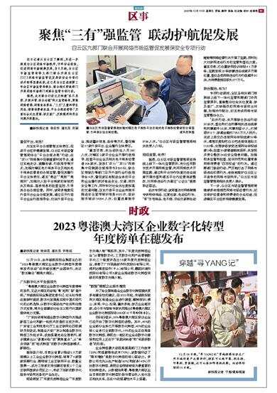 12月14日,由羊城晚报报业集团主办的“2023粤港澳大湾区企业数字化转型年度榜单发布活动”在羊城创意产业园举行,共议“数实融合”潮涌大湾区。 广东数字化水平全国领先 “粤港澳大湾区