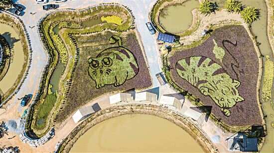 这是12月30日在泰国清莱拍摄的以猫为图案的巨型稻田画(无人机照片)。近日,泰国清莱艺术家在当地稻田中创作了三幅以猫为图案的巨型稻田画,吸引游人前来观看。