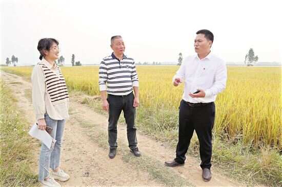 ■附城镇党委书记胡堪省(左)表示,全镇划分城乡融合商贸区、现代农业种植区和特色水产养殖区三个区,其中包括墨亭村的牛奶鲜食玉米示范种植基地。 |