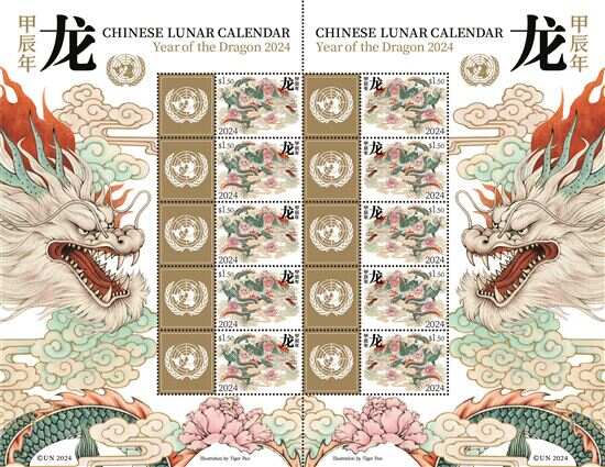 ■联合国邮政管理局将于1月19日在纽约发行中国农历甲辰年特别版邮票版张——龙票版张,庆祝中国农历新年的到来。 新华社发