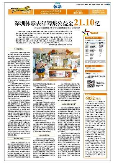 深圳体彩去年筹集公益金21.10亿