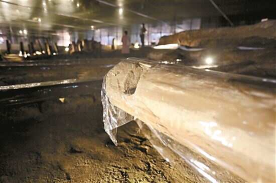 ■从南往北所见的南越国木构水闸遗址现场。 |