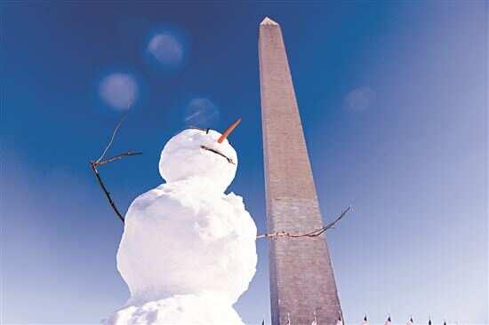 ■这是1月17日在美国首都华盛顿的华盛顿纪念碑前拍摄的雪人。 新华社发 |