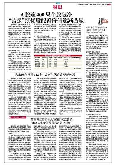 入市两年巨亏24.7亿 云南白药官宣要戒炒股