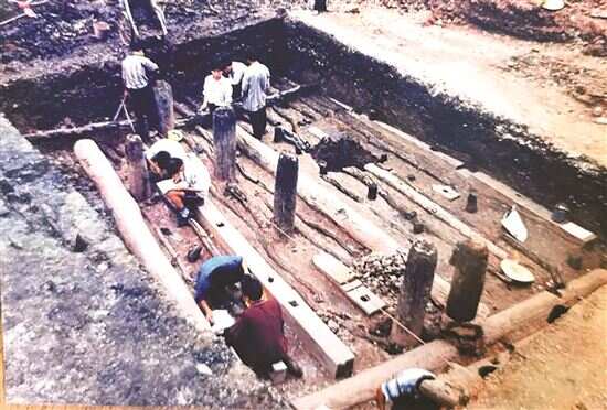 ■南越国木构水闸遗址考古发掘现场,资料图片。广州市文物考古研究院供图 |