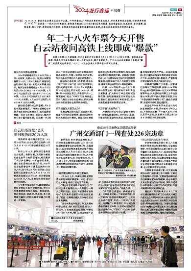 【开栏语】 2024春运将在本周五正式拉开大幕。今年的春运,广州将启用更多的客运站点,开行更多的客运线路,迎来更多的到发旅客……针对2024年春运,新快报将推出《2024龙行春运》系列报道