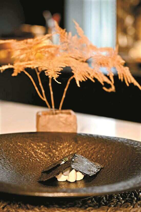 ■用黑芝麻与花椒碰撞出的“裂缝中的生命”甜品。 |