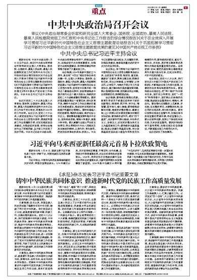 铸牢中华民族共同体意识 推进新时代党的民族工作高质量发展 据新华社电 2月1日出版的第3期《求是》杂志将发表中共中央总书记、国家主席、中央军委主席习近平的重要文章《铸牢中华民族共同体意识