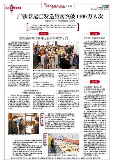 节前计划开行夜间高铁逾2000列 1月31日,广铁集团春运前六天累计发送旅客1108万人次,同比增长56%。广铁集团昨天发送旅客182.5万人次,同比增长43%。广东地区发送旅客126.8