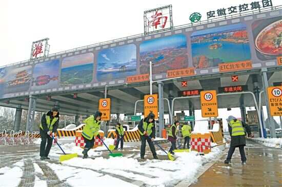 ■2月2日,安徽省交通控股集团有限公司淮南管理处淮南收费站工作人员在清理路面冰雪。新华社发 |