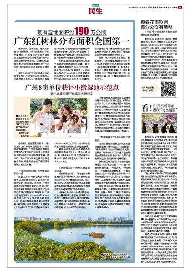 现有湿地面积约190万公顷 新快报讯 记者王彤 通讯员林荫 林园轩报道 2月2日是第28个世界湿地日。广东省2024年世界湿地日主题宣传活动在珠海淇澳-担杆岛省级自然保护区举行。记者获悉,