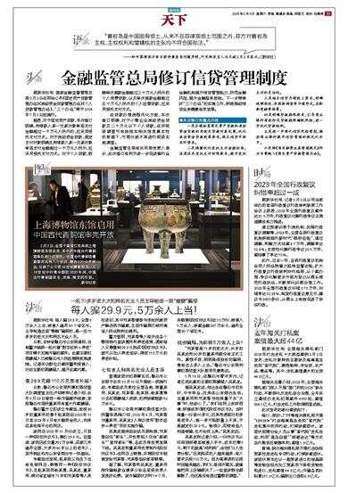 中国古代青铜馆率先开放 2月2日,坐落于黄浦江东岸的上海博物馆东馆启用,其中的中国古代青铜馆率先进行试开放。中国古代青铜馆最新陈列共有八个板块,精选500余件展品,反映了公元前18世纪夏晚
