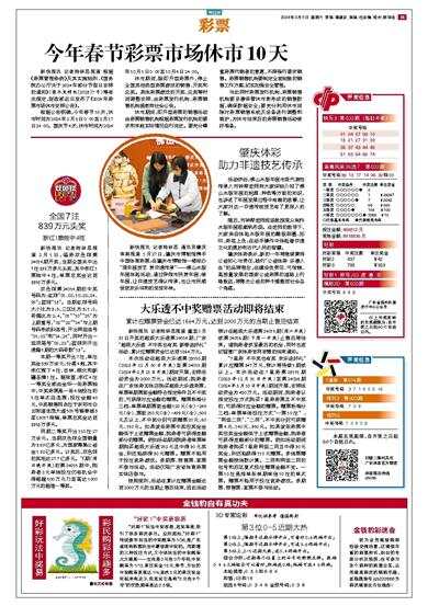 新快报讯 记者陆妍思报道 根据《彩票管理条例》及其实施细则、《国务院办公厅关于2024年部分节假日安排的通知》(国办发明电〔2023〕7号)等有关规定,财政部近日发布了《2024年彩票市场休市安