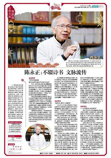 一个带着春寒的傍晚,曾连任中国书协两届副主席和两届广东省书协主席的陈永正在中山大学蒲园的家中接受了新快报记者的专访。这是一个弥漫着书香、墨香的家,客厅整墙的书架里存放了不少中国古代汉语工具书。近来很少出现在公众场合的陈永正身穿朴素的中式对襟布衣,气定神闲,对近几年的学术研究、写书法心得娓娓道来。虽然已年过八旬,但他时常关注拍卖信息,掌握第一手诗词书法作品的交易情况,也在亲人的帮助下看看AI如何写诗,可谓走在网络冲浪的前端。 ●谈研究 “没有注意拍卖 是无法研究好近代诗词书法的” 作为一名多年来从事中国古籍整理和研究工作,尤以古代诗文编选、笺注、校点著称的学者,年过八旬的陈永正依旧活跃在学术出版的舞台上。过去一年,他的两本诗词笺注著作正式出版,一本是由上海古籍出版社出版的《屈大均词笺注》,一本是由广东人民出版社出版的《梁鼎芬诗词笺校》。 谈起出版《梁鼎芬诗词笺校》,陈永正认为这位“岭南近代四家”的诗词里,既保留了岭南地区的传统,在创作上又有所创新。“梁鼎芬是少年天才,光绪六年20多岁就进了进士,因上书弹劾李鸿章被连降五级。离京回粤后由两广总督张之洞所荐,任丰湖书院院长。梁鼎芬是广东重要的诗人,在全国来说也是很有灵气的近代诗人。” 《梁鼎芬诗词笺校》一书收集到的诗人诗词,比前人两本著作中都要多。之所以能够找到那么多散落的诗词,陈永正使用的是近年来火起来的艺术拍卖品搜索网站。“传统的信息来源是不足够的,学者如果没有注意社会拍卖,是无法研究好近代诗词书法的。” 在为梁鼎芬诗词做笺校的过程中,陈永正落实每个词的出处,把诗词按韵脚排好,还结合了诗人的年谱,把创作时诗人所经历的大事、社会交往也添加进其中。“书印刷前一个月还在修改。去年一整年都在不断地补充,每天对着电脑四五个小时,眼睛也坏了。现在就是‘眼又蒙,耳又聋’。” 陈永正戏谑地形容自己过去半年看书的状态是“闭目观书如水过,一时流尽少年春。”由于视力大不如前,他每天读书是把一本大字线装书放在身边,凭记忆背书,背不出来时就翻一下身旁的书看看书上文字。 ●谈写诗 “好的诗,要有三层意思” 2023年12月,陈永正和现任广东省书法家协会主席张桂光在新快报开设专栏《岭南雅韵》,接连9期推介广州诗词传人的佳作。开专栏的目的,就是为了纪念上世纪五六十年代成长起来的一代广州文人,以期培育起新一代的年轻诗词人,使传统文化、诗词创作薪火不断,昌盛繁荣。 网络上有评价陈永正为“当代杜甫”,认为他的诗格调极高,遣词造句古雅精奇。就是这样一位写诗能手,也会好奇AI究竟能不能做到写诗这件事。 陈永正坦言,曾让女婿给他演示如何让AI来作诗。“确实能写,但在我眼里,都是最劣的歪诗。AI目前在诗词创作上还只是做理性思维与感性思维的有机结合,无法分辨好坏。” “好的诗,我认为要有三层意思。就像前人所说,要像将衣裳折了又折,意思中又包含意思。” 陈永正认同钱钟书的观点:一句诗不包含两层意思不是好诗。他解释,好诗里往往有多层意思:第一层是言内之意;第二层是言外之意,是诗人还想说什么;第三层是象外之意,是不同读者读诗以后产生的不同看法。引申到诗词注释工作者,首先不能理解错诗人的言内之意,还要尽量窥探作者的心意。“当我的孙女问我《题西林壁》中‘不识庐山真面目,只缘身在此山中’是何意?我和她说,不能只是直白翻译,要尝试理解诗人当时是在什么角度来写这句诗。” 陈永正指出,近年来越来越多的学者加入诗词注释的行业,但当代学者过度依赖电子搜索,出现了“不懂诗词”的现象越来越多。“做诗词注释,不仅要知道一个词怎样解,还要知道整首诗怎样解。简单地把字词意搜索出来,有可能被搜索工具过往的数据误导。所以我总是强调,要懂诗词,懂写作。我们研究古文字的就知道,以‘龙’字为例,考古发掘可以看到甲骨文时候就有这个字,然后一直传承演变。中华文脉就像大江大河一样奔流不息。” ●谈书法 “一生的爱好,不能放弃” 陈永正在当代书坛威望很高,曾连任中国书协第四、五届副主席,也曾连续两届担任广东省书协主席。但他为人一直低调,当了十多年的书协主席期间,没有在国内举办过一次展览,书法集也只是出了薄薄的几本,更曾说自己只是第二流的书家,书法仍需时间的检验。 在视力退化之后,年过八旬的陈永正依旧写书法。“书法是一生的爱好,不能放弃的。但没想到过了八十以后,我的书法还会有变化。个中原因,是因为眼睛看不清以后,我不再注重技巧与细节,这往往就有了想象不了的出笔。” 陈永正自言,一直以来都遵循“书道精微”的理论,写书法注重技巧和细节。但在视力退化以后,看得朦朦胧胧,很多以前不敢写得下笔,现在也敢了。“我也担心没了以往写字的优点,草率了。又想到,即使是人的外貌,绝对对称那就是不完美。一个字没有缺陷,就是缺陷。所以到了某个程度,要某种放弃,不再追求那么严谨的笔正美。这就要问问熟悉我的人,究竟我的字是退了还是进了。” 陈永正 曾任中山大学中国古文献研究所研究员、中文系博士生导师,历任中山大学岭南文献研究室主任,中国书法家协会第四、第五届副主席,广东省书法家协会主席,中华诗教学