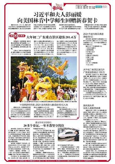 新快报讯 记者黄闻禹 通讯员粤文旅宣报道 春节假期第二日,广东全省气温回暖,天气总体晴好,群众出游意愿高,迎来假期出游小高峰。 记者从广东省文化和旅游厅获悉,据初步测算,2024年春节假期
