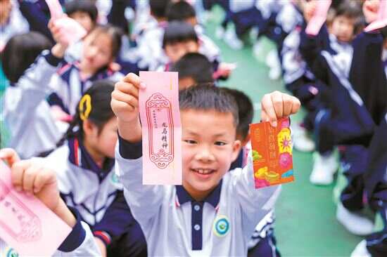 ■在海珠区怡乐路小学,学生收到新春祝福利是。 |