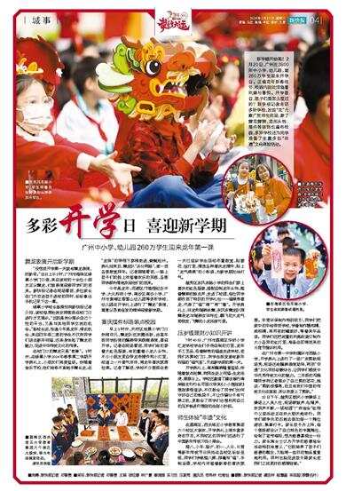 广州中小学、幼儿园260万学生迎来龙年第一课 新学期开始啦!2月20日,广州近3800所中小学、幼儿园,逾260万学生迎来开学日。正值龙年新春佳节,校园内到处洋溢着欢腾与喜悦。开学首日,孩