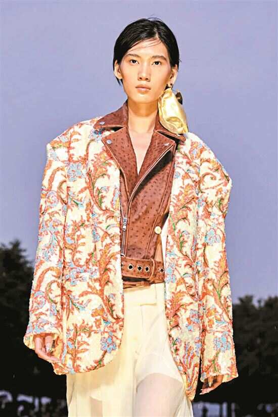刺绣的加入让单品表达出与别不同的层次感,在大单西的造型搭配上更强调了廓形感。 |