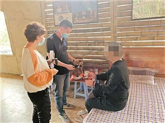 ■谭素华和同事抓获诈骗嫌疑人(右)。 |