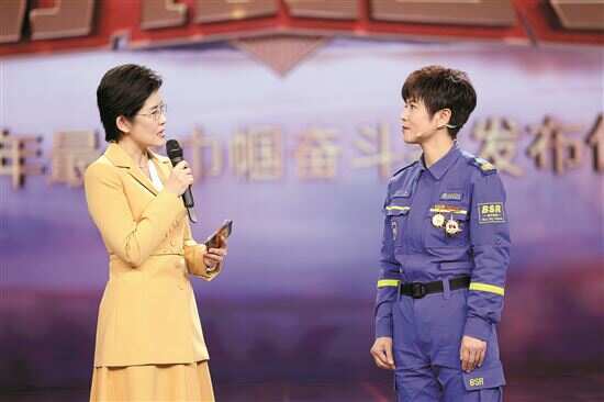 ■在2024年最美巾帼奋斗者发布仪式上,安徽省合肥市蓝天救援队队长苏琴(右)与主持人互动交流(3月4日摄)。 |