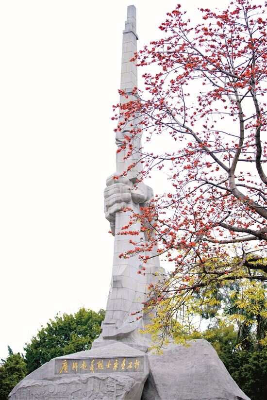 ■烈士陵园中,木棉花与广州起义纪念碑互相映衬。 |