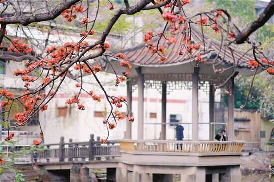■海珠区黄埔村内,盛放的木棉花与古村融为一体。 |