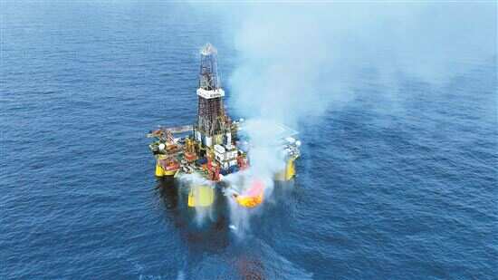 ■“南海八号”钻井平台在开平南油田探井进行产量测试(2023年7月10日摄)。 |