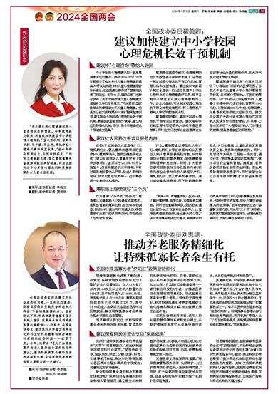 “中小学生的心理健康状况一直是我关注的重点。今年我再提交提案,希望能加快建设中小学校园心理危机干预长效机制,做到早识别、早干预、早治疗,降低学生心理危机事件的发生率。”在今年的全国两会上,全国政