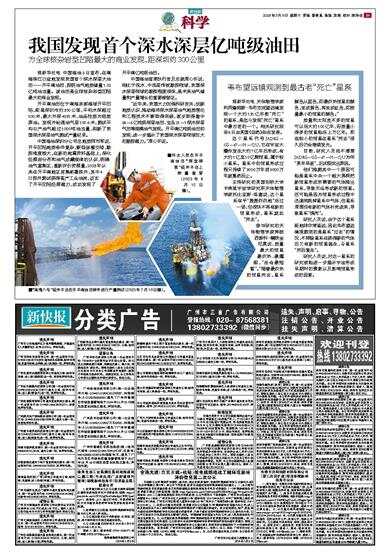 为全球核杂岩型凹陷最大的商业发现,距深圳约300公里 据新华社电 中国海油8日宣布,在南海珠江口盆地发现我国首个深水深层大油田——开平南油田,探明油气地质储量1.02亿吨油当量。该油田是全