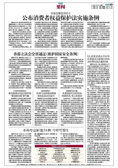 据新华社电 香港特区立法会19日三读全票通过《维护国家安全条例》(以下简称条例)。这标志着香港特区落实了基本法第23条规定的宪制责任,完善特区维护国家安全的法律制度和执行机制取得重大进展。
