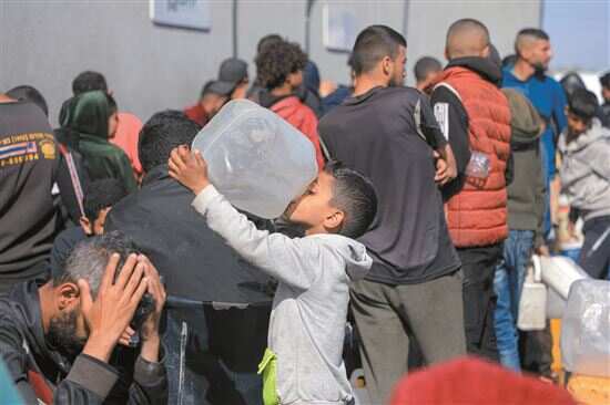 ■3月22日,在加沙地带南部城市拉法,巴勒斯坦人等待打水。新华社发 |