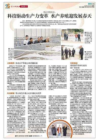 生蚝一般要养殖3年才能上市,而通过科技创新杂交培育的三倍体生蚝,养8个月左右就能上市了;普通培育南美白对虾苗存活率约为50%,而采用生物絮团技术,幼苗的存活率可高达80%-90%…… 日前,新快报记者走进阳江市阳东区农业农村局以及多家企业,深入了解当地如何在发展中加快形成新质生产力,实现传统水产养殖产业“老树新花”的典型发展经验。 以新提质 推动水产养殖业高质量发展 新质生产力“特点是创新,关键在质优,本质是先进生产力”。今年2月18日召开的广东省高质量发展大会提出,要推进“有组织的科研”“有组织的转化”,更好实现从科技强到企业强、产业强、经济强。 2月19日,阳江市高质量发展大会暨营商环境年动员大会也提出,要优化营商环境,塑造现代产业竞争新优势、激发企业科技创新活力,加快形成新质生产力,为阳江高质量发展提供新动能。 阳东区地处广东西南沿海,海域面积2286平方公里,海岸线长130多公里。阳东区委农办常务副主任、区农业农村局党组成员、区乡村振兴局常务副局长梁永链在接受新快报记者采访时表示,发展新质生产力,对阳东的渔业特别是水产养殖来说,影响是非常重大和深远的。阳东区因地制宜,依托海洋资源丰富的优势,注重“以新提质”,大力扶持水产养殖业实现稳定、健康、高质量发展,在发展现代化农业产业园、加速实现种业科技自立自强等方面形成了发展特色。 梁永链介绍说,阳东区2019年就开始创建对虾省级现代农业产业园,涵盖了雅韶镇、大沟镇、东平镇、新州镇沿海区域,面积约330平方公里,海水养殖水面8.56万亩,其中对虾养殖面积达35600亩,已建成高位池对虾精养池塘8700亩,土塘混养2.67万亩。产业园投入资金超1.7亿元,重点用于改善农业基础设施,提高科技含量,促进产业融合,解决了产业园中第一产业相对薄弱,基础设施滞后的短板,大力推进对虾产业“生产+科技+加工+品牌+营销”的全产业链发展升级,推动形成新质生产力,努力打造现代化绿色生态养殖标准化大基地,构建了产业集群融合发展、农民增产增收、二三产业增值收益的联农带农机制,为建设对虾养殖强区作出了重大贡献。 在渔业的发展中,阳东区注重鼓励养殖企业推动产学研结合,加快种业振兴,在生蚝、对虾育苗等方面,走在了前列。 科技赋能 渔业转型升级小对虾撬动大经济 “以前来一场台风或下一场大雨,或者遭遇持续高温,水产养殖损失就很大。用老办法养殖已经不能适应水产业的发展了。”对于科技创新驱动形成新质生产力,广东南湾水产有限公司(下称“南湾水产公司”)相关负责人陈飞有切身的体会。 位于阳东区大沟镇海头村的南湾水产公司成立于2019年,被列入了阳东区首批对虾省级现代农业产业园。该公司工厂化养殖基地加上高位池养殖等共约占地200亩。陈飞说,公司这几年能够稳健发展,关键就在于科技创新,在于新的生产方式。 新快报记者了解到,针对容易受自然灾害、病虫害、污染等影响的传统养殖短板,南湾水产公司下定决心进行技术变革和高标准改造。在阳东区农业农村局的支持下,公司大力发展设施渔业,搭建养殖大棚进行工厂化养殖。该公司还与中国水产科学研究院南海水产研究所(以下简称“南海水产研究所”)、广东省现代农业装备研究所、广东省气象公共服务中心、广东水产学会等单位和机构进行紧密的产学研合作,为产业发展提供了强有力的技术支撑。 南美白对虾幼苗被投放在最上面那一级虾池,长到0.8厘米左右就放入第二级虾池,长到一定的大小,再放入第三级……新快报记者在南湾水产公司的养殖车间了解到,这里建有可控式对虾封闭式工厂化循环水养殖车间,三阶段跑道式养殖生产线28条,每年可养殖对虾6-8批次,每平方米产量可达10-15斤/批。 公司里设有专门的实验室,除了有南海水产研究所的技术团队随时提供技术支持外,还有来自大连、上海、天津、厦门、四川、甘肃等地院校的研究生来实习交流。因为有科技的加持,南湾水产公司采取生物絮团的先进高效生态养殖技术养殖虾苗,既保证了整个养殖过程水体的清洁干净,也促使对虾幼苗的成活率提升至80%-90%,而且提高了品质。 “很多小养殖户凭经验养殖,风险很大,因为他们不懂科学,看不到水下的情况。”陈飞说,南湾水产公司利用快检设备,一旦发现对虾不吃饲料或者患病,技术团队很快就能检测出来,采取办法应对。“我们深知科技是第一生产力,这几年政府支持和自己投资的科技设备都有一百多万元了”。 新快报记者了解到,围绕渔业转型升级的主线,南湾水产公司正大力推动水产养殖的规模化、专业化,逐步发展成集水产种苗繁育、养殖、加工、销售全产业链为一体的现代化渔业企业,成为带动周边数十养殖户创新发展的龙头企业。 创新驱动 高收益三倍体牡蛎苗 推广至全国 “这一串有40片,公司一年可产六七百万片。”位于阳东区大沟镇华洞村的广东阳江市天博水产科技有限公司(下称“天博公司”)建有广东省第一个牡蛎人工育苗场,来自中国科学院南海海洋研究所牡蛎研究团队的技术人员符政君从培育池取出一串培育板串告诉新快报记者,四五月就可以投放新一批牡蛎幼苗了。 新快报记者了解到,天然牡蛎苗品种较杂,抗病能力不强,要养殖三年左右才能成熟上市。而通过人工授精选育,可以筛选掉一些品相不好