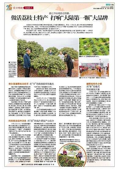 走进湛江市徐闻县迈陈镇北街村的荔枝园,万亩荔花簇拥枝头。再过一个月左右,湛江市徐闻县迈陈镇的荔枝即将率先成熟。目前,广州市南沙区驻迈陈镇帮扶工作队(以下简称“驻迈陈镇工作队”)全体队员和徐闻县党员干部、商会一起,正在紧锣密鼓地筹备第二届“荔枝文化节”。 举办荔枝节、建“广湛同心”南沙帮扶荔枝产业示范园,推动荔枝转型升级,打造“荔枝特色小镇”……两年多来,驻迈陈镇工作队深入推进“百千万工程”,因地制宜,把荔枝“土特产”做成“大产业”,使迈陈镇这个曾经名不见经传的边远乡镇持续在国内外“火了起来”。 举办首届荔枝文化节 把“早”的效益发挥到最大 地处中国大陆最南端徐闻县迈陈镇阳光充沛,土地肥沃,非常适合荔枝的生长。迈陈镇荔枝种植历史可以追溯到300年前,目前种植面积多达2.4万亩,徐闻县荔枝种植产业70%的规模在迈陈镇。早在2020年,以迈陈镇“北街荔枝”为代表的徐闻荔枝已被列入全国名特优新农产品名录。 驻迈陈镇工作队深入开展产业调研发现,迈陈镇荔枝壳红如缯,膜如紫绡,果如美玉,味甘甜入脾,果大皮薄肉满核小,品质极佳,其最大优势在于是大陆地区最“早”成熟。由于荔枝挂果的周期不长,越早推出市场越受欢迎,产值也越高。为了把“早”的效益发挥到最大,驻迈陈镇工作队开当地“先河”举办了首届荔枝文化节。 新快报记者了解到,在驻迈陈镇工作队的推动下,迈陈镇2022年、2023年连续两年追加财政资金,引进社会资金1100余万元投入荔枝产业基础设施建设。 2023年5月10日,广州南沙帮扶资金又支持60万元,助力迈陈镇政府举办了“首届徐闻迈陈荔枝文化节”,大力宣传推广“中国大陆第一颗荔枝”,跑好了广东省荔枝接力赛的“第一棒”。 2023年首届徐闻迈陈荔枝文化节重点孵化“中国大陆第一颗荔枝”公共品牌,打造“北街荔枝”企业品牌。当天,新快报记者在北街村的主会场看到,现场人山人海,前来尝鲜的游客和进货的商贩络绎不绝。广州市南沙区驻迈陈镇工作队队长高华告诉新快报记者,首届荔枝文化节反响强烈,吸引了全国40多家媒体争先报道,80多个采购商前来洽谈采购业务。不但让当地的荔枝早早脱销,更让国内外普遍知晓了“中国大陆第一颗荔枝(最早成熟)”来自徐闻县迈陈镇。“事实证明,举办荔枝文化节的品牌化推广做法是非常精准、有效的。”高华表示。随着“迈陈荔枝”知名度的大幅提高,今年,来自国内各大城市以及欧洲、日本等地采购商纷纷定下了采购“合同”,通过“订单式”农业,迈陈镇很多果园的荔枝尚未成熟就被订购一空。 科技驱动品种改良 用“质”的提升增强产业动力 今年2月18日,广东省高质量发展大会提出要大力发展新质生产力。坚定不移走好高质量发展之路,抓住科技创新这个“牛鼻子”,把创新落到“富民兴村”的土特产的产业升级、推广和长期发展上。 近日,驻迈陈镇工作队和迈陈镇党委、政府邀请了来自国内20个高校、企业、教育、科技等部门的一批专家学者,召开“农村农业高质量发展”专题会议,针对迈陈镇“百千万工程”重点工作特别是荔枝产业的高质量发展“把脉寻方”。高华介绍说,在这次专题会议上,专家们提出了保护和打响“中国大陆第一颗荔枝”公共品牌的专业建议,为迈陈荔枝高质量发展发挥了智囊团作用。 驻迈陈镇工作队一直高度重视科技创新人才对产业发展的推动作用,创新性建立了“人才飞地”模式发展帮扶产业经济。目前,迈陈镇已经与中国科学院南海研究所、广东省农科院、华南农业大学、中国热带农业科学院南亚热带作物研究所、上海交通大学深圳研究院等科研院所深度合作,借力珠三角地区人才优势高地,在行政区域外建立“人才飞地”,为迈陈荔枝良种研发、飞地产业孵化和人才培育提供支撑。 新品无核荔枝市场价可达到60元一斤;改良品种“仙桃荔”可长到鸡蛋大小,市场价高达280元一斤。意识到科技创新改良品种带来巨大发展动能,驻迈陈镇工作队再次大胆谋划,率先启动规模化改良荔枝推动产业转型升级。 2023年,由迈陈镇政府“出”地,帮扶工作队出“钱”,使用广州市南沙区自筹资金100万元和镇政府的农场土地,倾力打造了“广湛同心荔枝产业示范园”。园区位于迈陈镇北街村荔枝种植核心区域,依托湛江地区特有的火山岩红土地,“广湛两地一心”共同打造甜蜜“爆表”的“中国大陆第一颗荔枝”。高华透露,整个荔枝产业示范园区占地100亩,引导示范徐闻荔枝做足“早”的大文章,大面积推广品种改良。同时,工作队牵头研究推进荔枝罐头、荔枝菜品、荔枝冻眠技术。科技驱动,打造“广湛同心荔枝产业示范园”,成为驻迈陈镇工作队推动荔枝高质量发展的又一重大举措。 建荔枝特色小镇 用“新”的模式带动镇强民富 今年的“中央一号”文件提出要学习运用“千村示范、万村整治”工程经验,有力有效推进乡村全面振兴。其中提到要“促进农村一二三产业融合发展,鼓励各地因地制宜大力发展特色产业,支持打造乡土特色品牌。实施乡村文旅深度融合工程,推进乡村旅游集聚区(村)建设……” 新快报记者了解到,在学习“千万经验”推动一二三产业融合发展方面,驻迈陈镇工作队也是行动迅速。认真吸收“杭州云栖小镇”块状经济的“浙江经验”,工作队大力支持迈陈镇建设