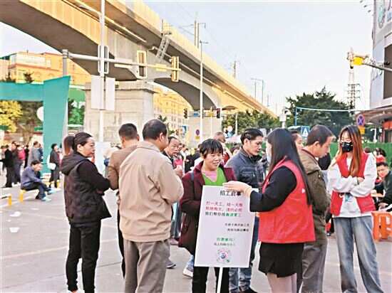 ■在广州花都狮岭,工作人员向工友们介绍“微工卡”服务。 |