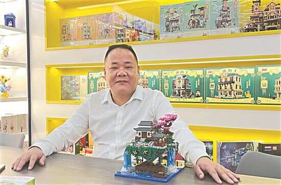 ■王锐亮和“桃花潭”积木,此款积木在多多跨境销量可观。 |