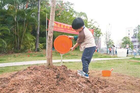 ■小朋友咚咚再次参加“我为花城添绿”活动。 |