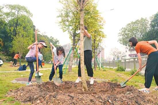 关键词:责任 ●白云机场T3航站楼建设者: 未来我们远行,这里永远有思念 一大早,广州白云国际机场T3航站楼项目的6位建设者就从工地出发,约提前一个小时到达植树点,成为本场“第一名”。 “作为广州重大在建工程项目的建设者,我们很荣幸在广州的土地上添砖加瓦。大家来自不同的部门,一起过来种下一棵代表企业、代表我们自己的树木。同时,我们也种下了美好的愿望,那就是为广州高质量发展出力的愿望。”项目团支部书记陈慧敏介绍,作为新快报长期的读者,她在看到“我为花城添绿”报名信息后迅速向单位汇报,单位很重视,每个部门都推选了一名优秀员工作为代表参与此次活动。“希望能够通过这棵树来见证我们长存的友谊。” 由于白云机场T3航站楼离植树点不太远,工程结束要到明年年底,所以这群建设者们都很有信心能够见证树木的首次开花。“植树点离白云站也不远,假如我们要去天南海北建设祖国,未来也很方便回来看看它。”陈慧敏说。 关键词:友谊 ●刚刚认识的两家人: 一起种树,共同成长 在略显粗壮的大叶紫薇前,小漪和妈妈严女士、小萤和妈妈夏女士齐齐犯了难。两对母女一合计,互相帮助,一起种吧!由一位妈妈先扶住树,其他三人填土、浇水…… 一系列操作下来,两棵树很快就种好了。树木就是有一种神奇的能量,能自然地建立起人与人的羁绊。草坪上,小漪拉着小萤的手,跑得飞快。她们写下了心愿卡后,一起系到了树上。谁能想到,她们才刚刚认识呢。 “是孩子们牵的头,两个女孩子年龄相仿,很快就熟络起来,一起玩。一开始我们并不认识。”夏女士说,之所以带女儿来参加活动,就是希望树能陪孩子成长。“没想到来到新快报的添绿活动,孩子还能交到新朋友,简直是意外收获。我们要记住这个地方,有空的时候常过来看看。” 关键词:支持 ●《新快报》十几年老读者: 一家三代五口, 共祝人、树、城长青 叶先生是《新快报》的老读者,十多年来,他一直关注着《新快报》的新闻。这次从新快报微信公众号看到“我为花城添绿”,他第一时间就报了名。 “今年植树的位置是个小花园,希望这些树能给其他市民提供一片纳凉的绿荫。‘我为花城添绿’活动特别好,既为城市绿化助力,又给小朋友提供了难得的劳动体验,增强主人翁意识,也能够作为孩子成长过程中的一份宝贵记录。”叶先生说。 活动当天,叶先生一家五口从荔湾区自驾前往种树点,看到玉兰树后,一家人爱不释手。“这棵玉兰已经有了青绿的叶子,很符合‘为花城添绿’的主题。从扶正、培土到浇水,孩子能够全程体验植树的不易,培养环保意识。家里的老人也重拾了当年挥舞锄头的技能。全家都很有收获。”种完树,一家人认真商量了心愿卡的内容,最后写下了微心愿:人、树、城长青。“期待下一个花期,我们全家一起来到植树点欣赏玉兰花。”叶先生说。 关键词:爱情 ●热恋小情侣: 这棵树叫“原子葳”,由家人的名字组成 一看到新快报的征集令,吕敏怡和男朋友毫不犹豫地报了名。他们曾在网上捐过很多树,如今终于能在现实中亲手种下一棵树。获得名额后,小情侣还邀请了男方的姐姐、姐夫一起参与。 这是一株有双份爱情滋润的大叶紫薇。男生们捧起一抔抔肥沃的泥土,小心翼翼地铺设在树坑底部;女生们将大叶紫薇的根苗轻轻放入准备好的坑中。情侣加夫妻的家人组合分外默契,他们一边调整树苗的位置,一边用土壤固定其根基,确保它能够直立成长。 甜蜜的大叶紫薇安家落户后,一腔思念也被栽下。浪漫的人总会干一些出其不意的事,他们决定给树取名字。经过激烈的商讨,这棵树被命名为“原子葳”,由家人们的名字中各取一字组成,寓意着家庭的团结和希望。“名字不仅代表了我们对树的期望,也寄托了我们对未来生活的美好愿景。希望爱情有结果,也希望通过这个小小的行动,为地球增添一抹绿色,为社会注入一股生机。”吕敏怡说。 关键词:守护 ●“返场嘉宾”: 小树和孩子一起茁壮成长 今年,也有“返场嘉宾”。 咚咚就是其中一个。他舀了一瓢水,小心翼翼地把水浇灌在松软的泥土上。3年前,咚咚才4个月,妈妈就报名了新快报的“我为花城添绿”活动,带着尚在襁褓的他前往帽峰山栽下一株黄花风铃木。如今,咚咚还是拿不起铲子,但已经能跑能浇水啦!“希望宝贝也像小树苗一样快快长大。”咚咚妈妈骆女士满是爱意地说道。 “洲哥”和“乐弟”也是熟面孔。去年,1岁的乐弟还要抱,今年已能跟着哥哥一起踏上这片充满生机的土地。 阳光下,一家四口穿着轻便的户外服,脚踩泥泞,满脸欣喜。爸爸黄先生手持铁铲,熟练地填着土坑,旁边的洲哥跃跃欲试,他拿起儿童铲,努力地挖起更多的泥土,模仿着爸爸的动作。乐弟也迫不及待地想要参与,妈妈招女士于是帮他扶住水盆,让他体验浇水的乐趣。 今年的活动对招女士一家来说不仅仅是植树,更是一次特殊的教育经历。“我们想让孩子知道,种树不是随意的行为,而是要找到合适的地方,才能让这些小生命茁壮成长。”植树活动结束时,他们一家人围坐在刚种下的玉堂春旁,留下了一张幸福的全家福。 关键词:传承 ●热心公益的家庭: 推掉其他行程,一定要来参加 “我那天晚上在微信公众号看到征集令就想报名,结果忙忘了。一觉睡醒已经凌晨三点钟,睡眼朦胧也记着一定要报名,没想到,居然被选中