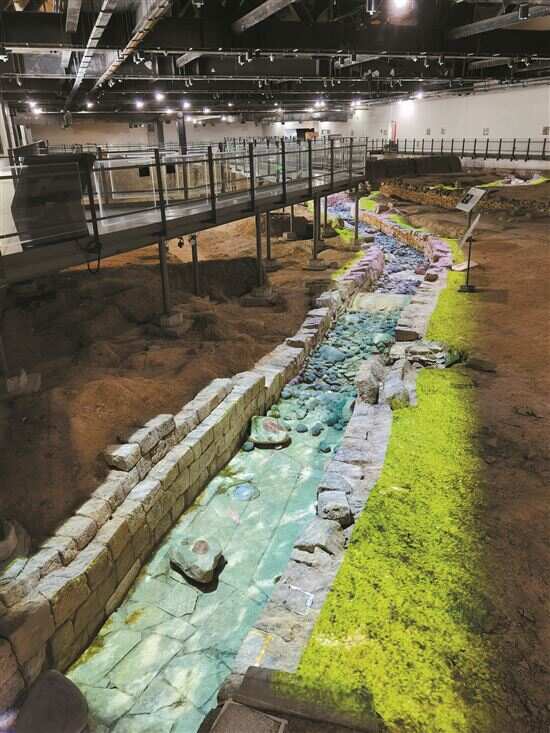 ■南越国宫署遗址中的曲流石渠,两千年后,声光电等现代技术使涟漪重现。 南越王博物院供图 |