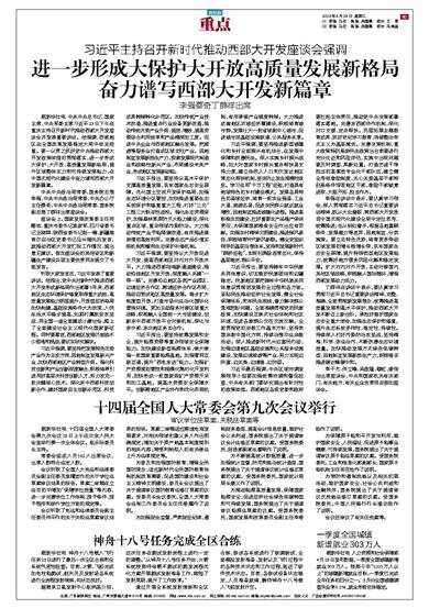 进一步形成大保护大开放高质量发展新格局 奋力谱写西部大开发新篇章