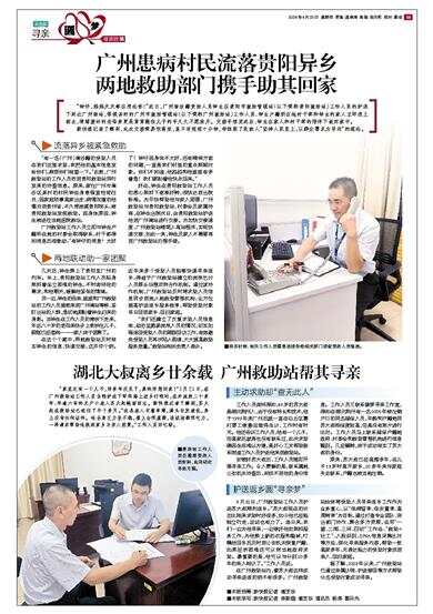 广州患病村民流落贵阳异乡 两地救助部门携手助其回家