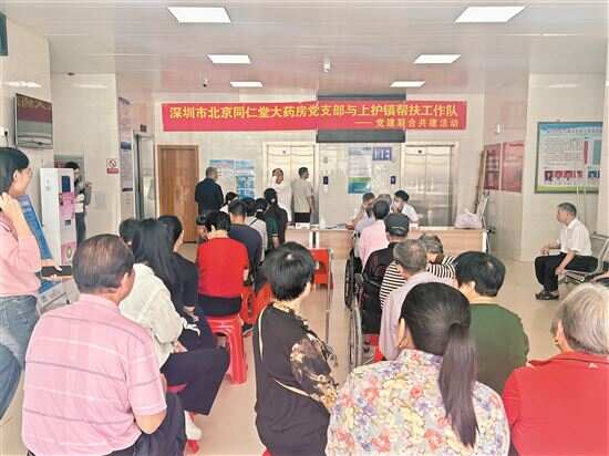 新快报讯 记者方轶 通讯员张婷婷报道 5月14日,来自深圳市北京同仁堂大药房(下称“同仁堂”)党支部的中医团队一行来到汕尾市陆河县上护镇,与深圳市驻汕尾市陆河县上护镇工作队(下称“工作队”)党支部开展联合党建及为期两天的中医送诊活动,受到当地干部群众的一致好评。 同仁堂党支部一行参观了上护镇农副产品展销中心、馨园两岸农民合作社及上护镇卫生院,双方就对近年来帮扶工作情况及深圳市北京同仁堂大药房党支部的建设工作情况进行交流和探讨。 14日起,同仁堂中医团队一行分别到上护镇公服办、上护镇卫生院开展免费看诊、针灸理疗服务,活动持续2天。工作队准备了罗汉果、枸杞、菊花、金银花等小礼品上百份,现场赠送给就诊的干部群众。送诊活动受到当地干部群众的热烈欢迎。 据了解,工作队得知上护镇群众有求医问药的需求后,借助派驻单位深圳市信访局的社会资源,主动联系深圳市北京同仁堂大药房沟通送诊事宜,得到该企业负责人大力支持,协调安排经验丰富的专家教授参与活动。同仁堂党支部书记周翔宇表示,通过走访及联合活动深刻感受到深圳对口帮扶对当地发展的重大意义,未来将探索更多合作可能,为乡村振兴贡献国企力量。