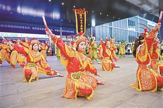 5月23日,女子英歌队在第二十届文博会现场表演。 |