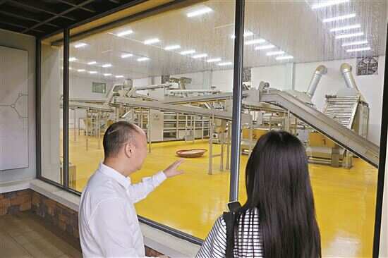 ■英九庄园副总经理吴镜文介绍全国首条自动化、标准化、规模化英红九号智能生产线。 |